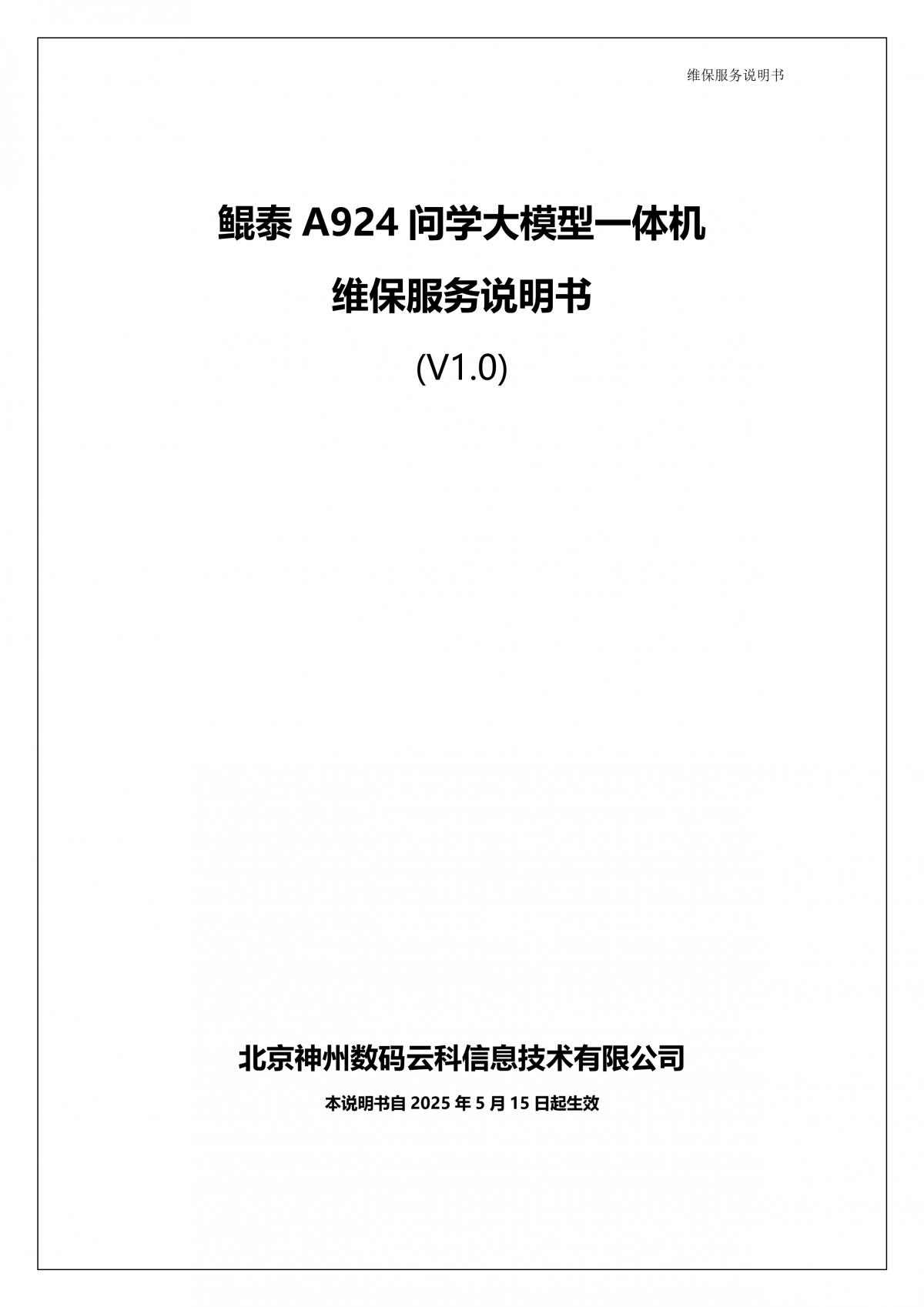 金荣中国A924 问学大模型一体机维保服务说明书_V1.0